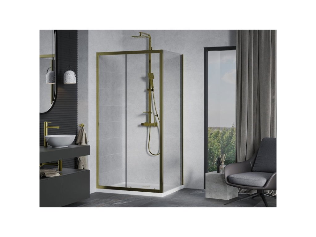Mexen Apia sprchový kút posuvné dvere 110 x 70 cm, priehľadné sklo, profil zlatý + sprchová vanička Flat, biela- 840-110-070-50-00-4010G