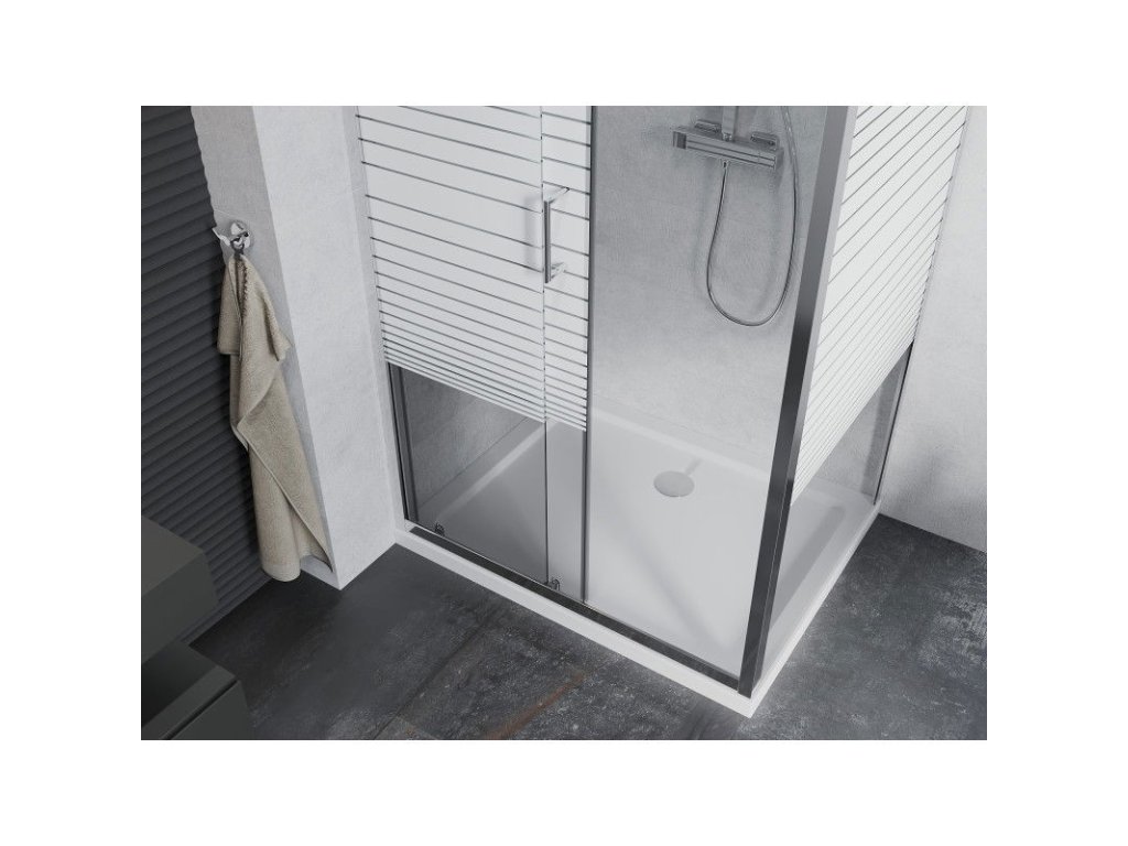 Mexen Apia sprchový kút posuvné dvere 110 x 80 cm, pásy, profil chróm + sprchová vanička Flat - 840-110-080-01-20-4010
