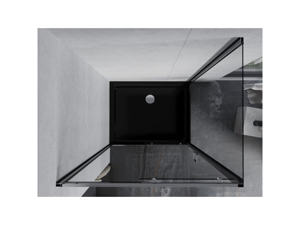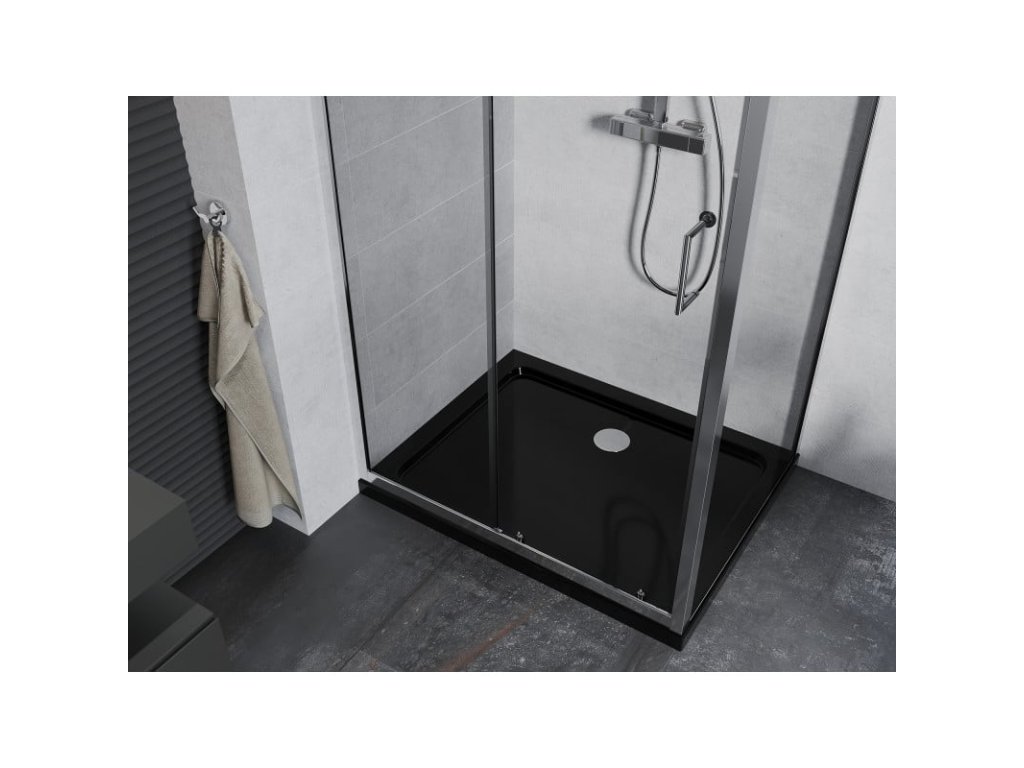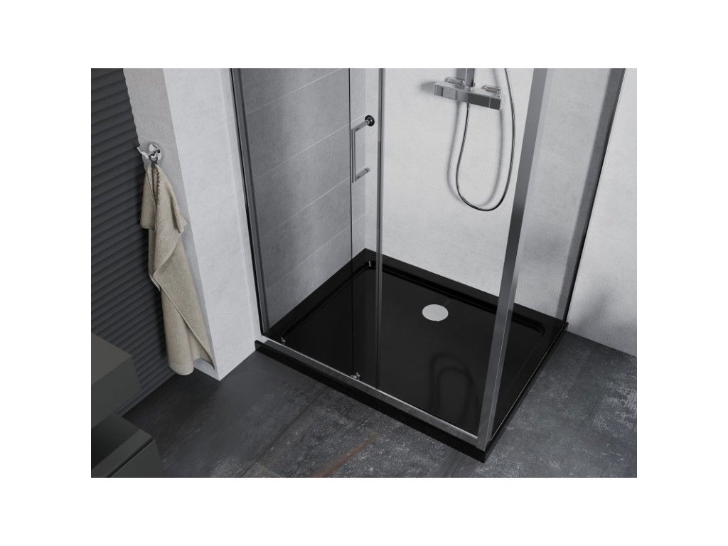 Mexen Apia sprchový kút posuvné dvere 110 x 80 cm, priehľadné sklo, profil chróm + sprchová vanička Flat, čierna - 840-110-080-01-00-4070