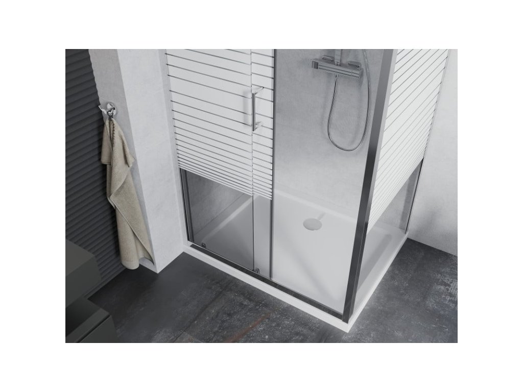 Mexen Apia sprchový kút posuvné dvere 120 x 80 cm, pásy, profil chróm + sprchová vanička Flat - 840-120-080-01-20-4010