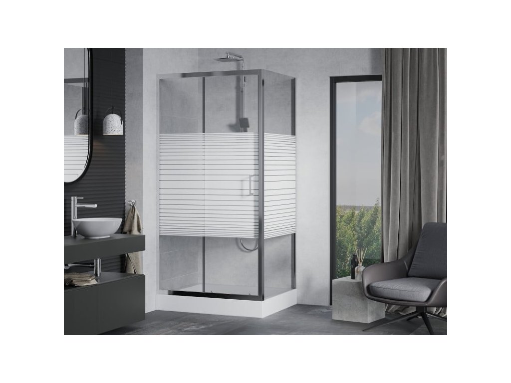 Mexen Apia sprchový kút posuvné dvere 120 x 80 cm, pásy, profil chróm + sprchová vanička Rio - 840-120-080-01-20-4510
