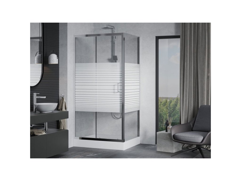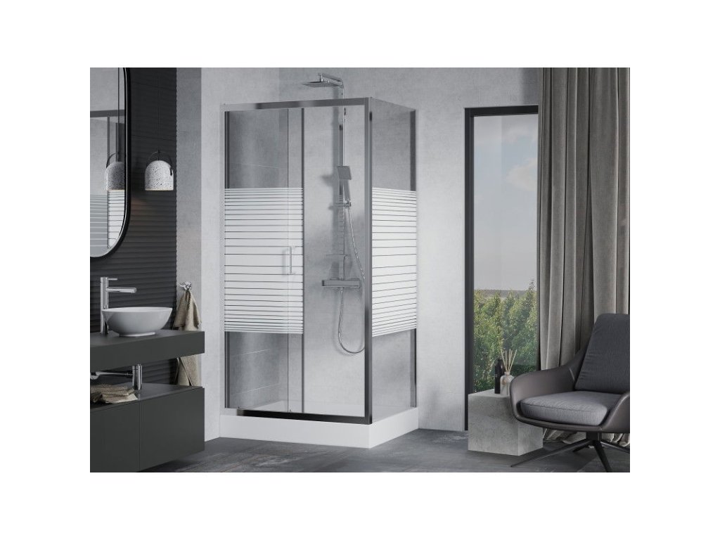 Mexen Apia sprchový kút posuvné dvere 120 x 90 cm, pásy, profil chróm + sprchová vanička Rio - 840-120-090-01-20-4510
