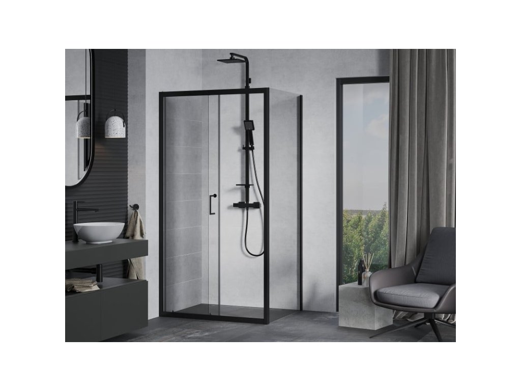 Mexen Apia sprchový kút posuvné dvere 125 x 80 cm, priehľadné sklo, profil čierny - 840-125-080-70-00