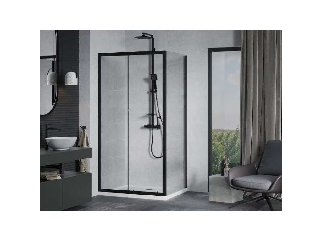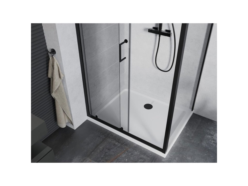 Mexen Apia sprchový kút posuvné dvere 130 x 100 cm, priehľadné sklo, profil čierny + sprchová vanička Flat, biela- 840-130-100-70-00-4010B