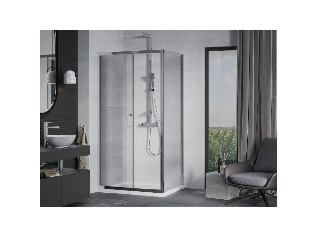 Mexen Apia sprchový kút posuvné dvere 130 x 70 cm, priehľadné sklo, profil chróm + sprchová vanička Flat - 840-130-070-01-00-4010