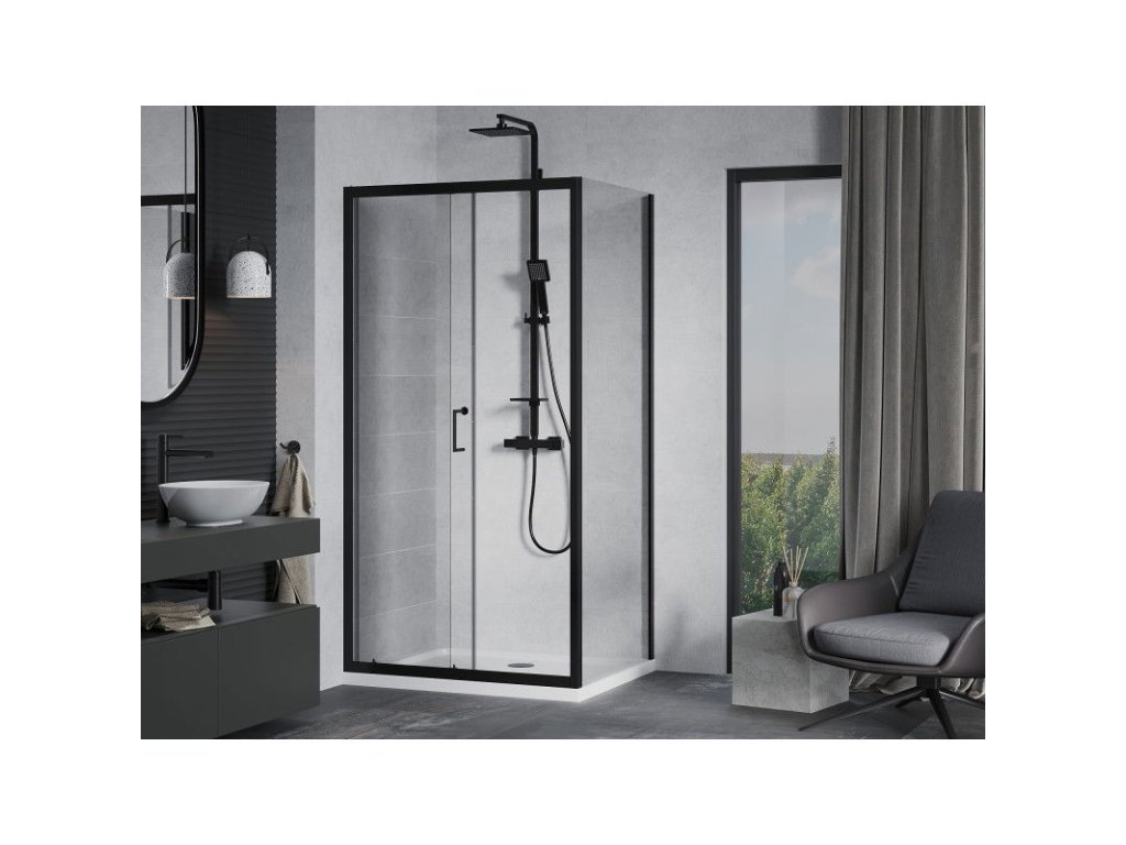 Mexen Apia sprchový kút posuvné dvere 130 x 70 cm, priehľadné sklo, profil čierny + sprchová vanička Flat, biela- 840-130-070-70-00-4010B