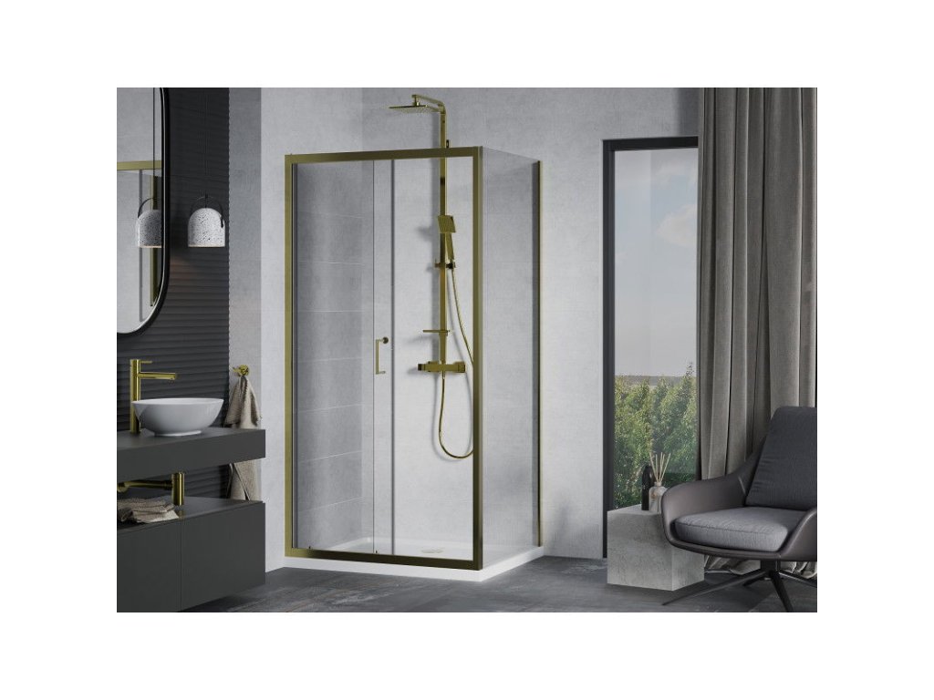 Mexen Apia sprchový kút posuvné dvere 130 x 70 cm, priehľadné sklo, profil zlatý + sprchová vanička Flat, biela- 840-130-070-50-00-4010G