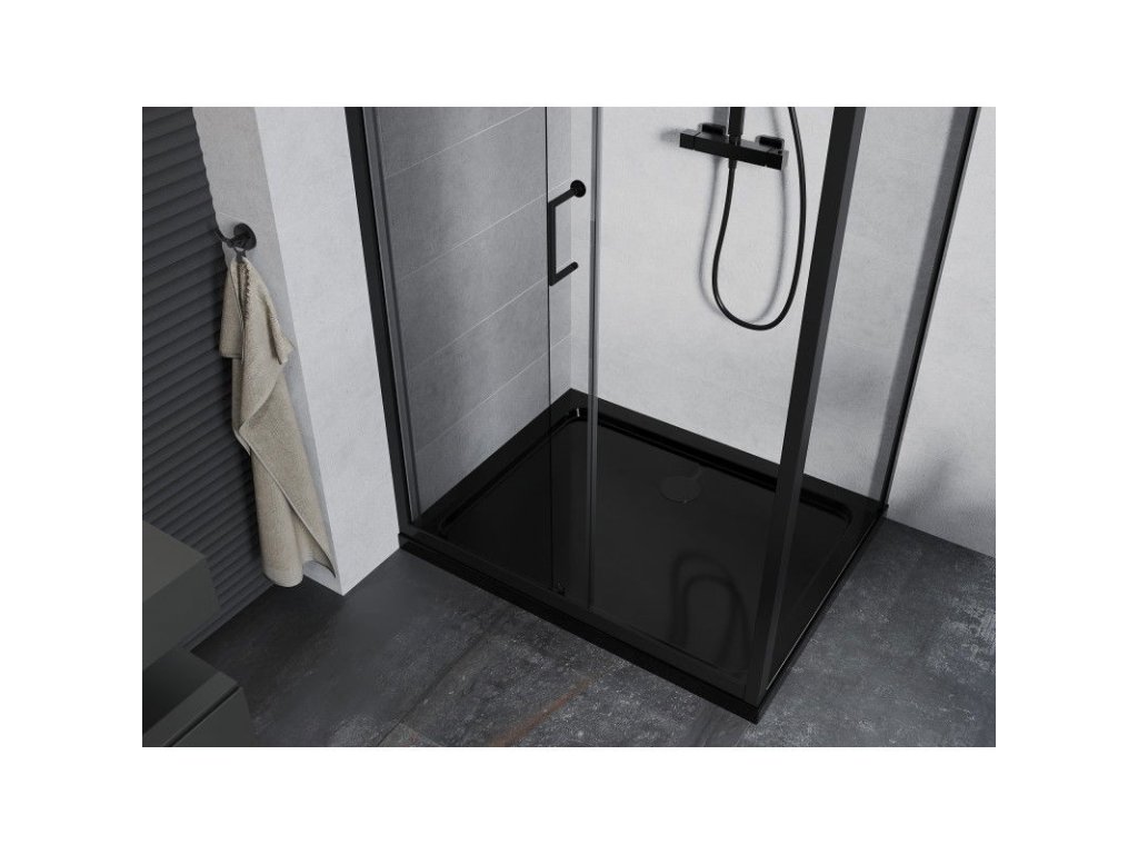 Mexen Apia sprchový kút posuvné dvere 130 x 80 cm, priehľadné sklo, profil čierny + sprchová vanička Flat, čierna - 840-130-080-70-00-4070B