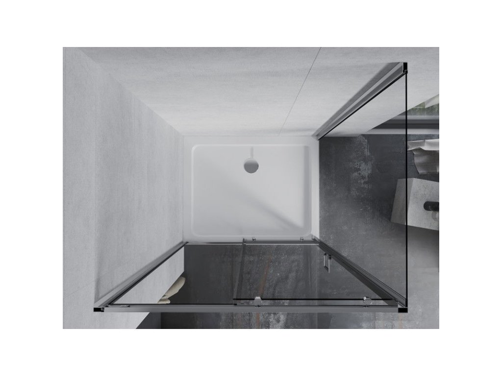 Mexen Apia sprchový kút posuvné dvere 140 x 100 cm, priehľadné sklo, profil chróm + sprchová vanička Flat - 840-140-100-01-00-4010