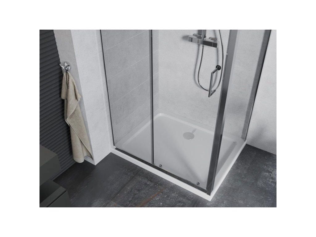 Mexen Apia sprchový kút posuvné dvere 140 x 70 cm, priehľadné sklo, profil chróm + sprchová vanička Flat - 840-140-070-01-00-4010