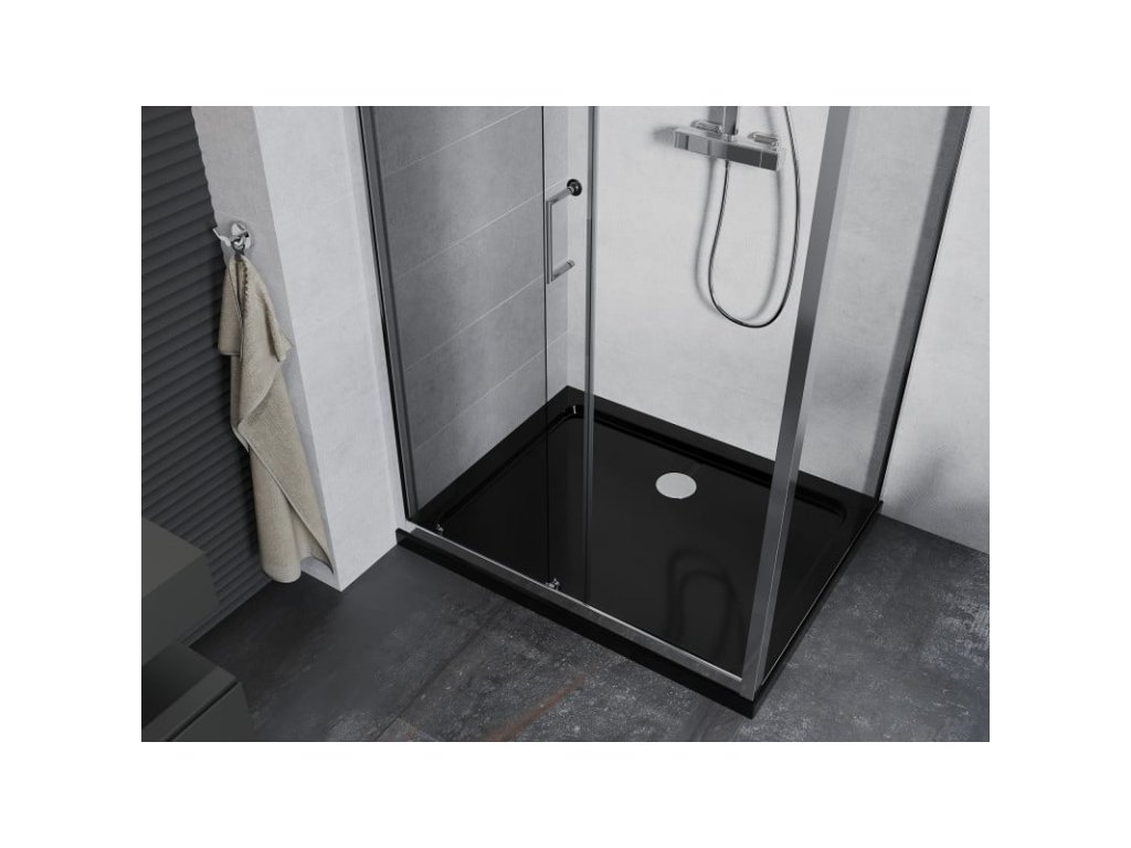 Mexen Apia sprchový kút posuvné dvere 140 x 80 cm, priehľadné sklo, profil chróm + sprchová vanička Flat, čierna - 840-140-080-01-00-4070