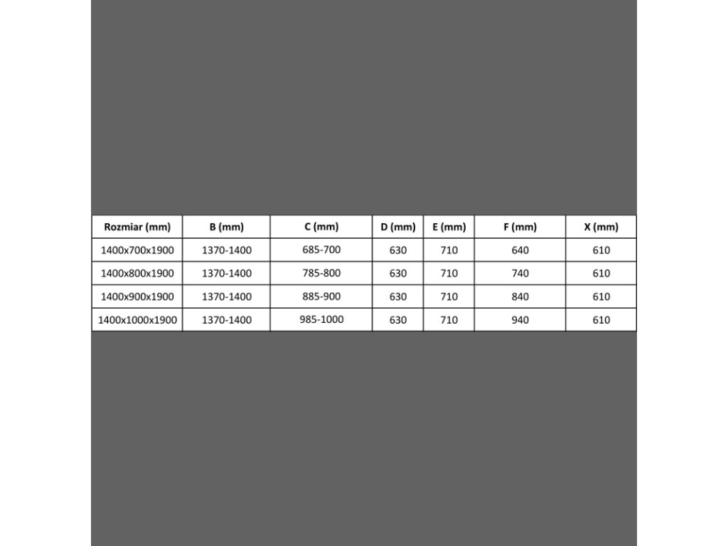 rozmery: 140x90 cm (dvere 140 cm. fixná stena 90 cm)