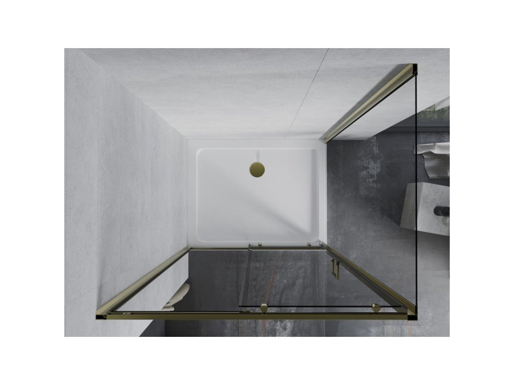 Mexen Apia sprchový kút posuvné dvere 140 x 90 cm, priehľadné sklo, profil zlatý + sprchová vanička Flat, biela- 840-140-090-50-00-4010G