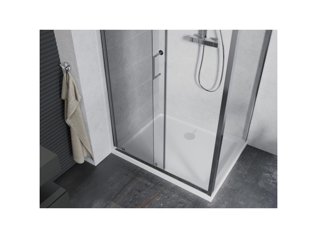 Mexen Apia sprchový kút posuvné dvere 90 x 100 cm, priehľadné sklo, profil chróm + sprchová vanička Flat - 840-090-100-01-00-4010