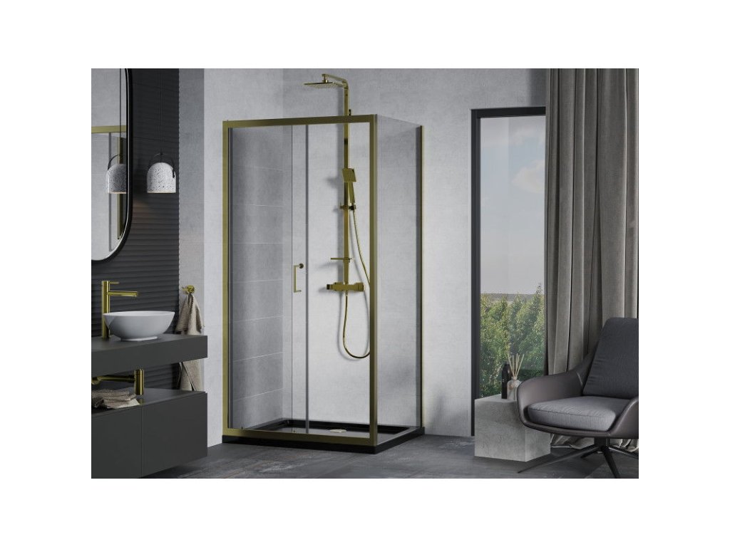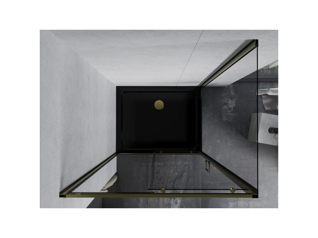 Mexen Apia sprchový kút posuvné dvere 90 x 70 cm, priehľadné sklo, profil zlatý + sprchová vanička Flat, čierna - 840-090-070-50-00-4070G