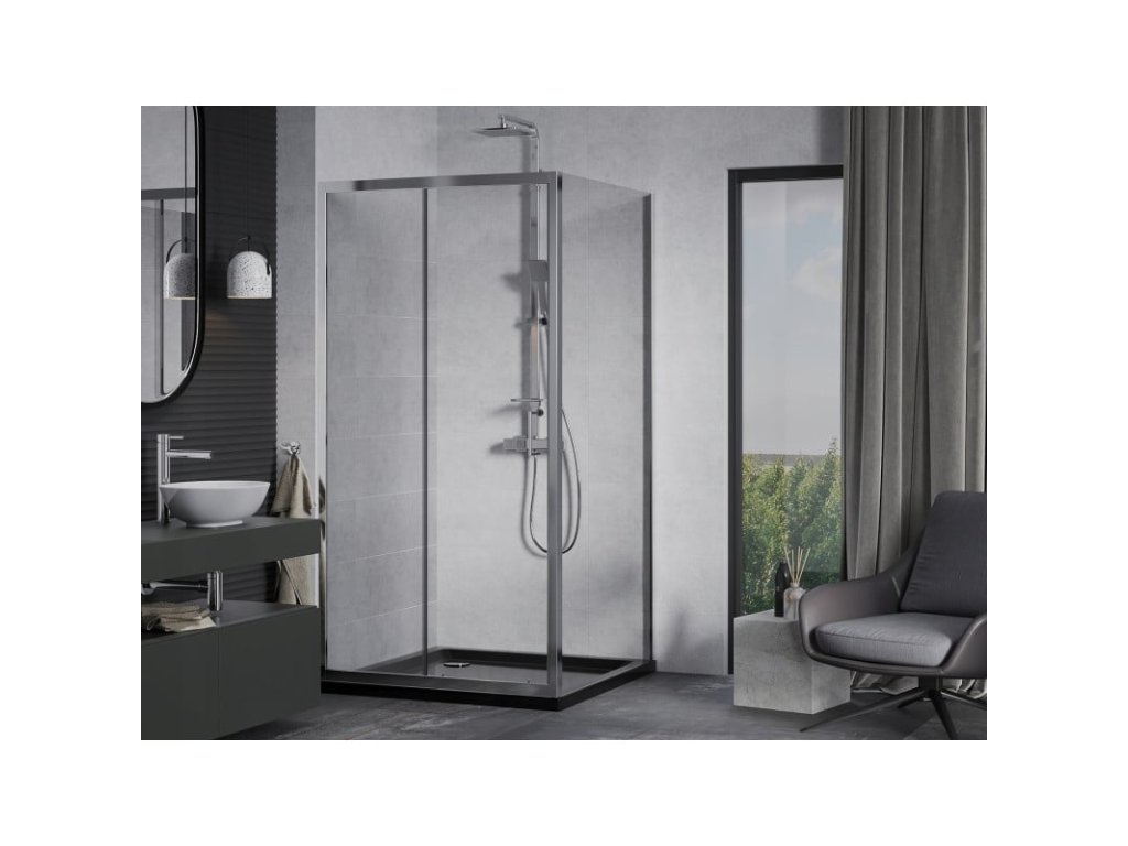 Mexen Apia sprchový kút posuvné dvere 90 x 90 cm, priehľadné sklo, profil chróm + sprchová vanička Flat, čierna - 840-090-090-01-00-4070