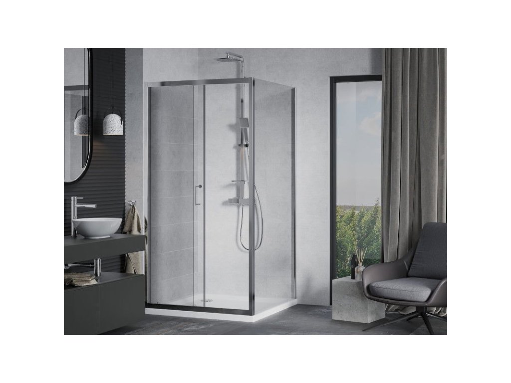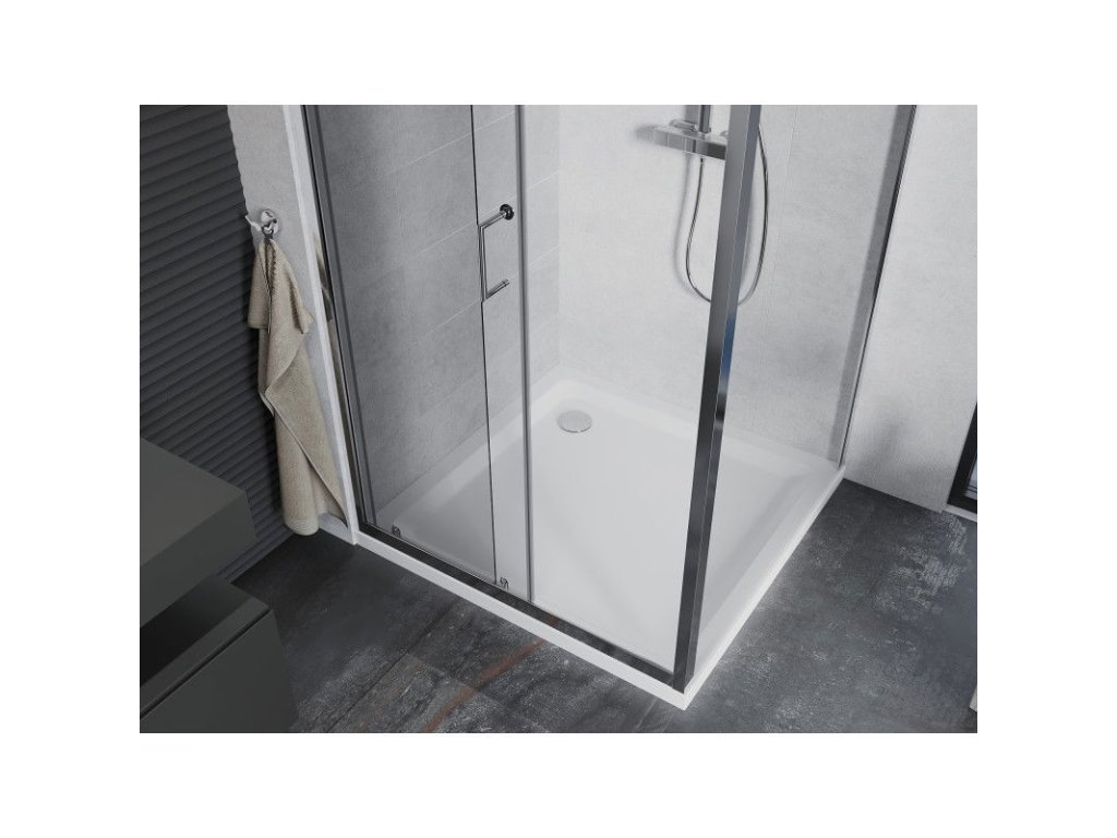 Mexen Apia sprchový kút posuvné dvere 90 x 90 cm, priehľadné sklo, profil chróm + sprchová vanička Flat - 840-090-090-01-00-4010