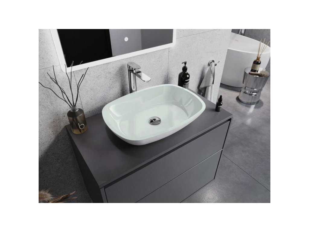 Mexen Araks sklenené umývadlo na dosku 54 x 39 cm, biele - 24155430