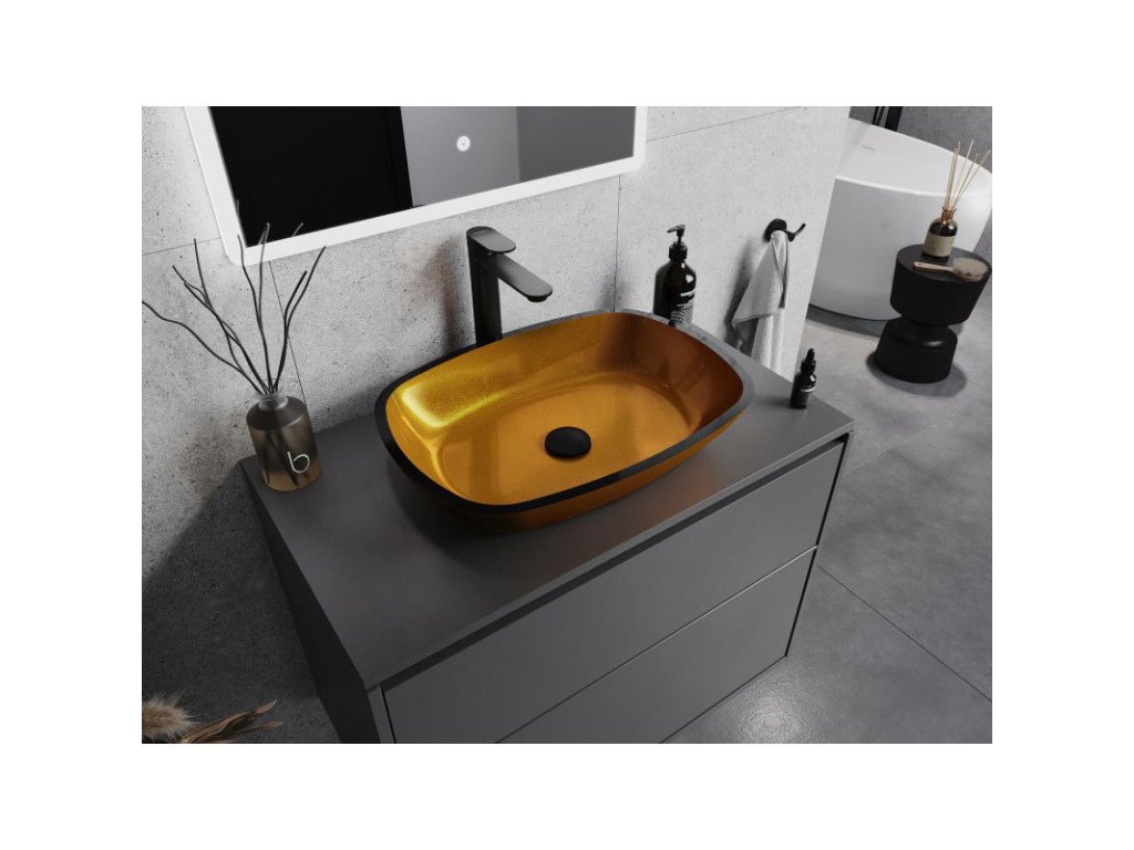 Mexen Araks sklenené umývadlo na dosku 54 x 39 cm, zlaté - 24155450