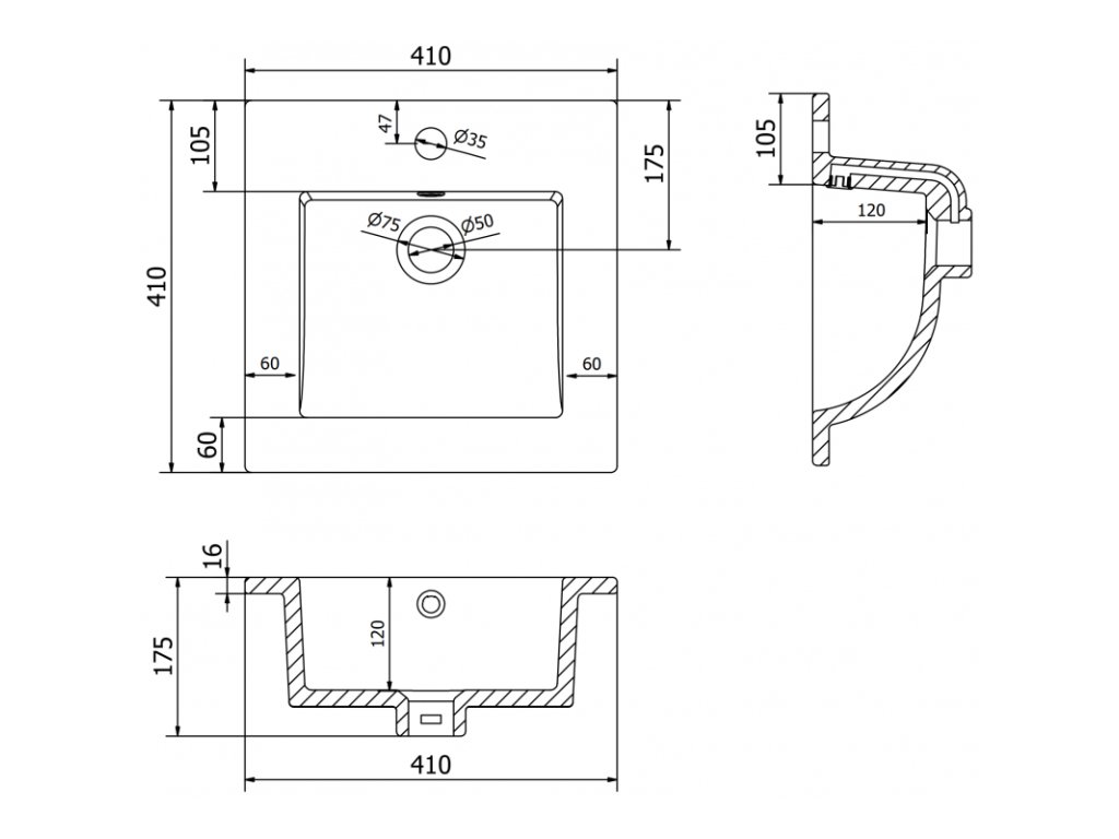 Mexen Atena vstavané umývadlo 41 x 41 cm, čierna matná - 25014170