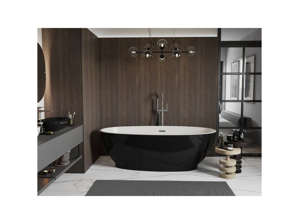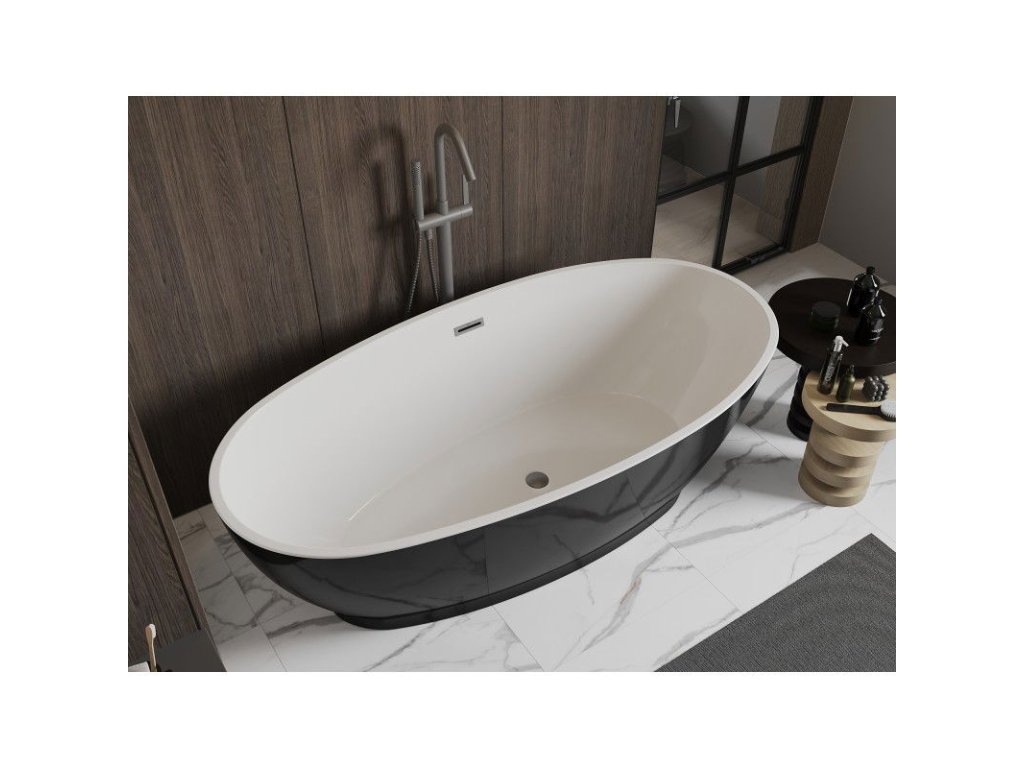 Voľne stojaca vaňa s rozmermi 180 x 90 cm je ideálnou voľbou pre tých, ktorí oceňujú moderný štýl v kúpeľni. Je vyrobená zo sanitárneho akrylátu a dostupná v elegantnej čiernej a bielej farbe s povrchovou úpravou gun metal, je estetická a praktická. Jej oválny tvar a matný povrch upútajú pozornosť, zatiaľ čo prepadový otvor a sifón, ktoré sú súčasťou balenia, poskytujú pohodlie. Vaňa ponúka aj odolnosť proti zmatneniu a UV žiareniu pre dlhotrvajúcu kvalitu a vzhľad.Dodatočné parametre