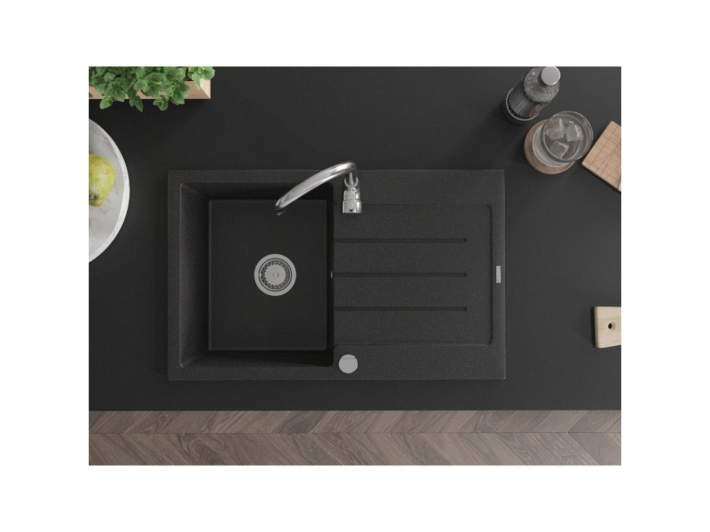 \n \n \nTechnické údaje: \n \nrozmery: 795x495x200 mm \n \nhĺbka komory: 200 mm \n \nrozmery komory: 440x360 mm \n \npriemer odtoku: ø90 mm \n \nmodel: 1-komorový s odkvapkávačom \n \ntyp: zapustené do pracovnej dosky \n \nfarba: čierny/strieborná metalíza \n \nmateriál: žula \n \nprepadový otvor: áno \n \notvor pre batériu: áno \n \nautomatický sifón v sade \n \nvysoká odolnosť proti poškriabaniu a zafarbeniu \n \nodolnosť proti tepelným šokom \n \npovrch pre ľahké čistenie \n \n2 predvŕtané otvory pre vlastné dierovanie ø35Dodatočné parametre
