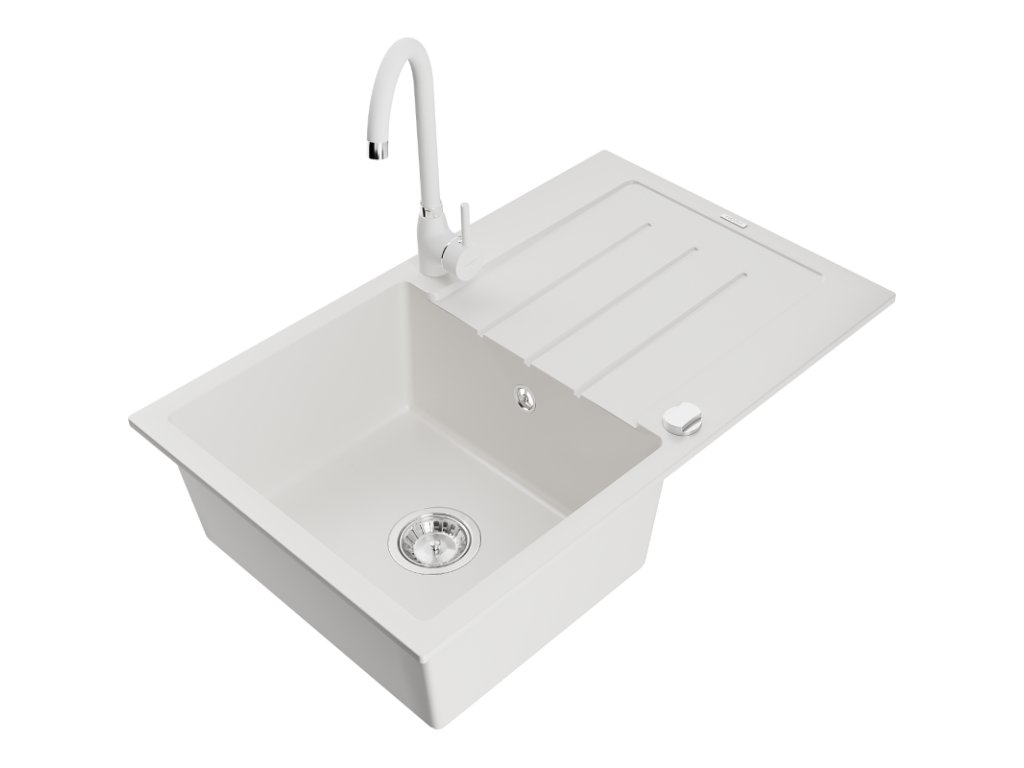 Mexen Bruno drez granitový 1-komorový s odkvapkávačom + batéria Telma, biely - 6513-20-670200-20