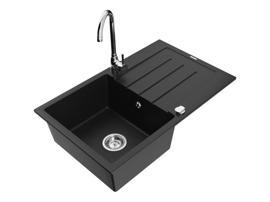 Mexen Bruno drez granitový 1-komorový s odkvapkávačom + batéria Telma, čierny - 6513-77-670200-00