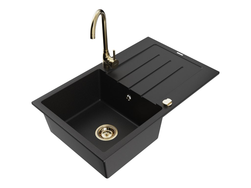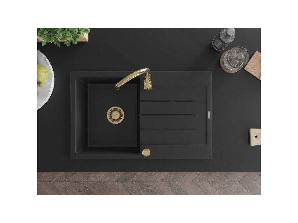 Mexen Bruno drez granitový 1-komorový s odkvapkávačom + batéria Telma, čierny - 6513-77-670200-50