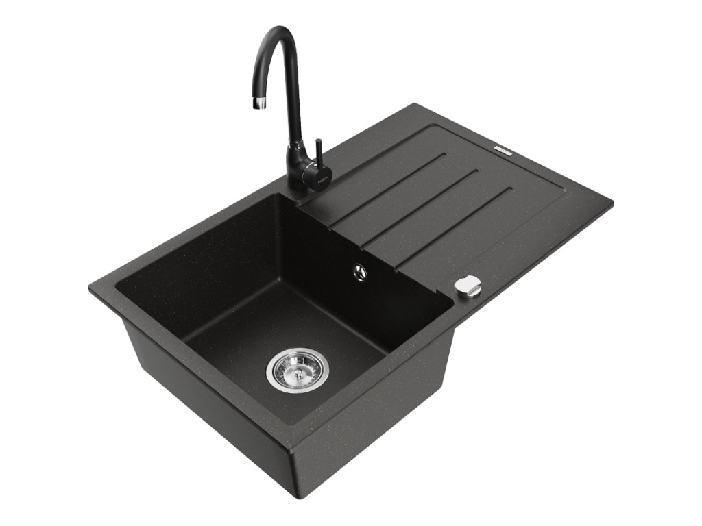 Mexen Bruno drez granitový 1-komorový s odkvapkávačom + batéria Telma, čierny/zlatý - 6513-75-670200-70