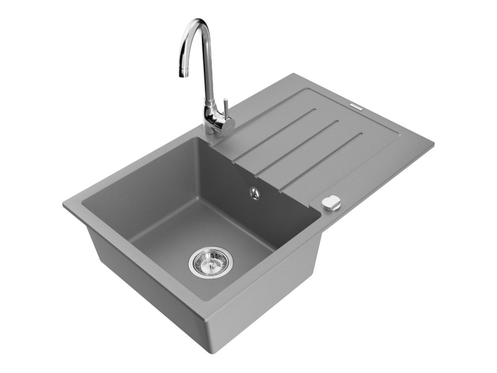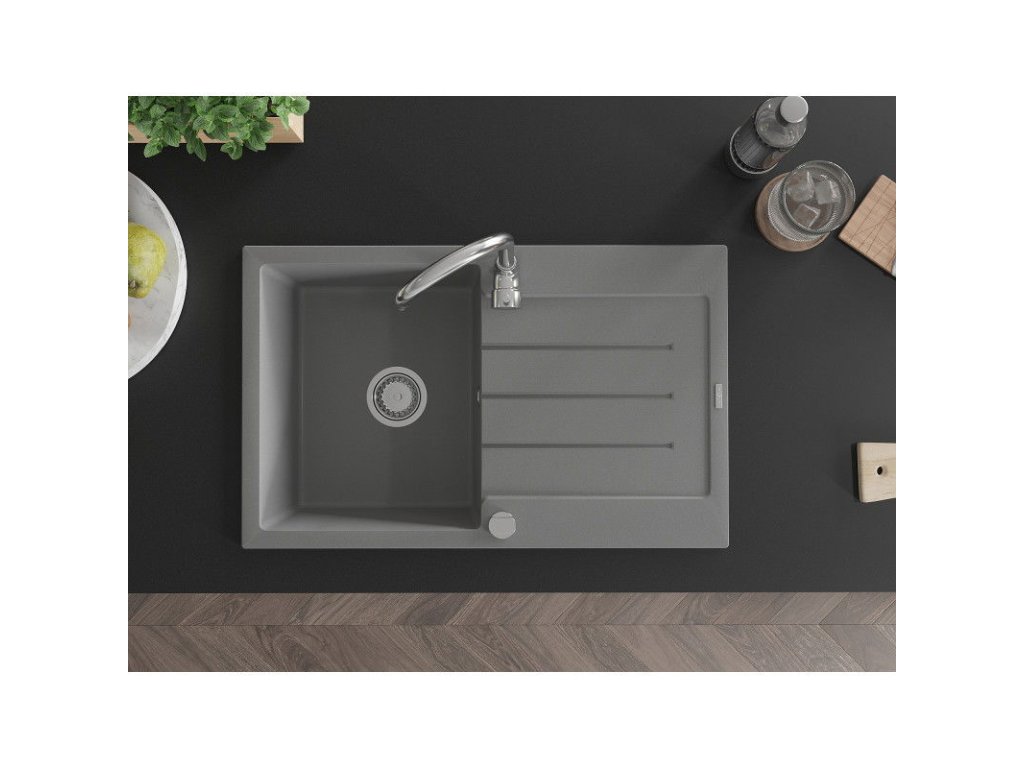 Mexen Bruno drez granitový 1-komorový s odkvapkávačom + batéria Telma, šedý - 6513-71-670200-00