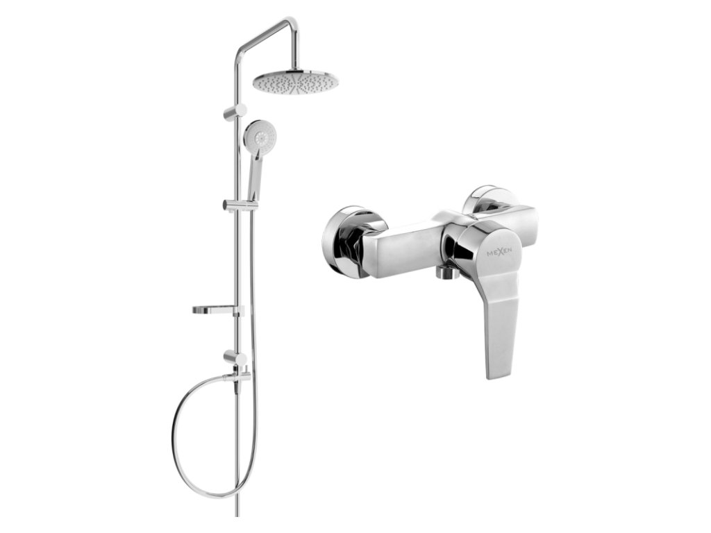 Mexen Carl nástenná sprchová súprava s dažďovou sprchou, sprchová batéria Caro, chróm - 746640240-00