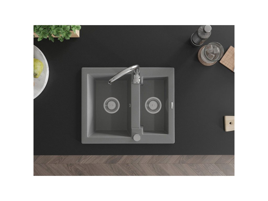 Mexen Carlos zlewozmywak granitowy 1,5-komorowy 582 x 475 mm, szary, syfon chrom - 6518581500-71