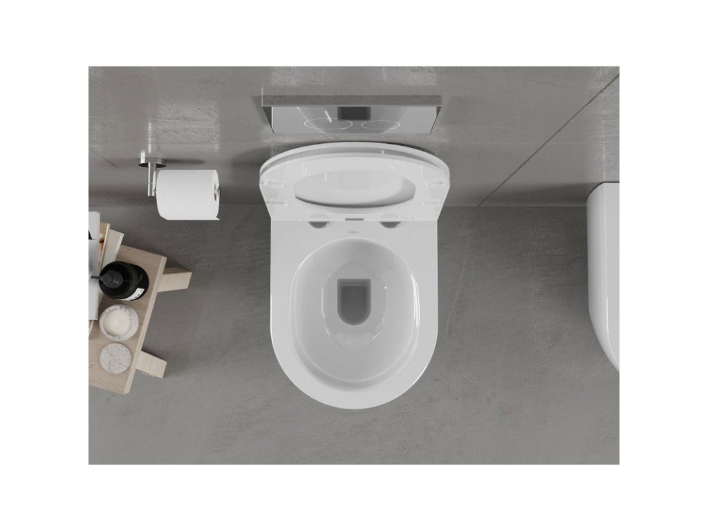 Mexen Carmen závesný WC záchod, splachovanie Rimless, s doskou duroplast pomaly padajúcou SLIM, biela - 30880300
