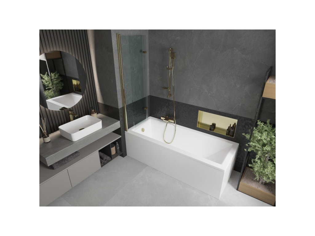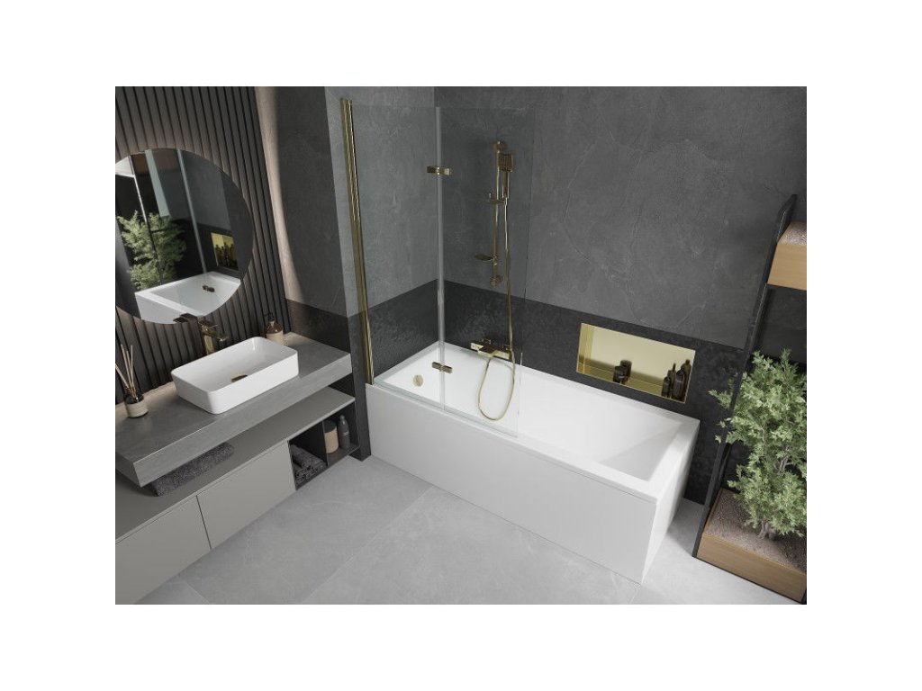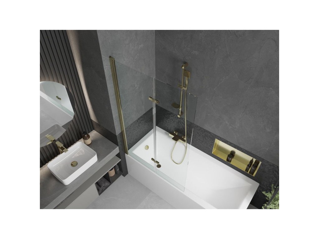 Mexen Castor 2-krídlová vaňová zástena 100 x 150 cm, transparentná, zlatá - 892-100-002-50-00