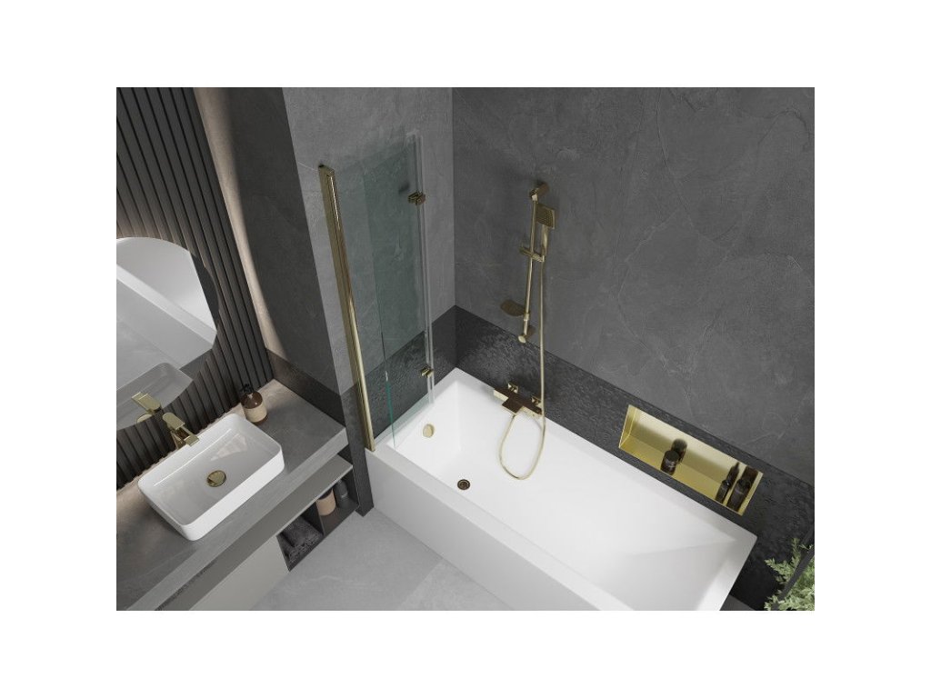 Mexen Castor 2-krídlová vaňová zástena 80 x 150 cm, transparentná, zlatá - 892-080-002-50-00
