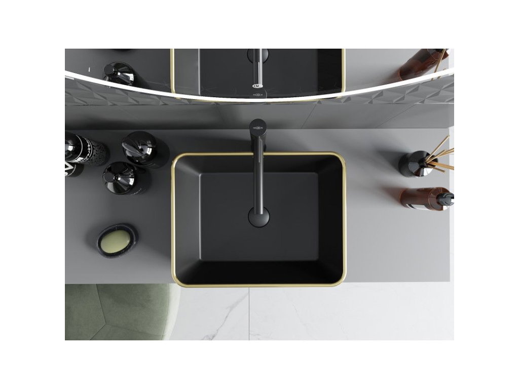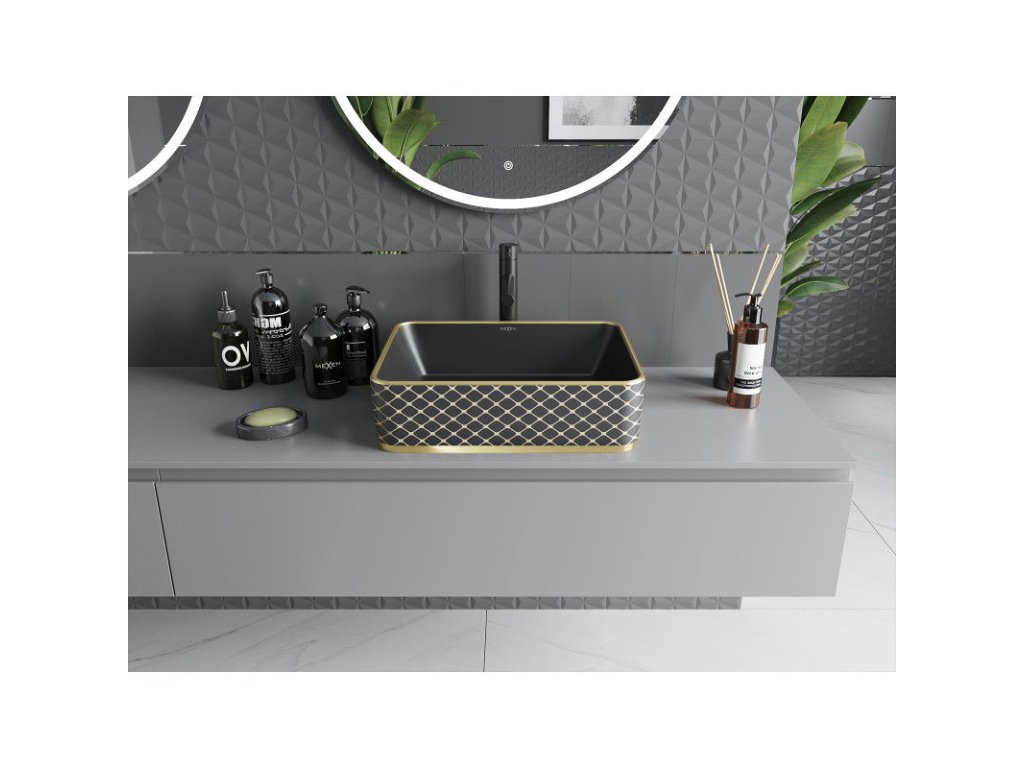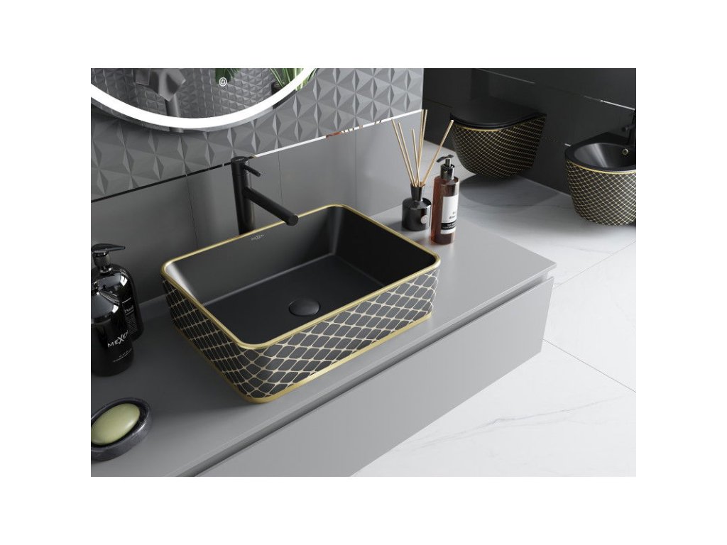 Mexen Catia umývadlo na dosku 48 x 37 cm, čierny matný/zlatý mriežkový vzor - 21314879