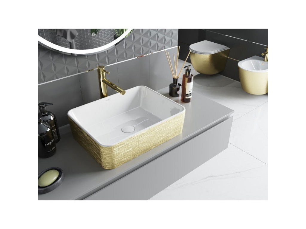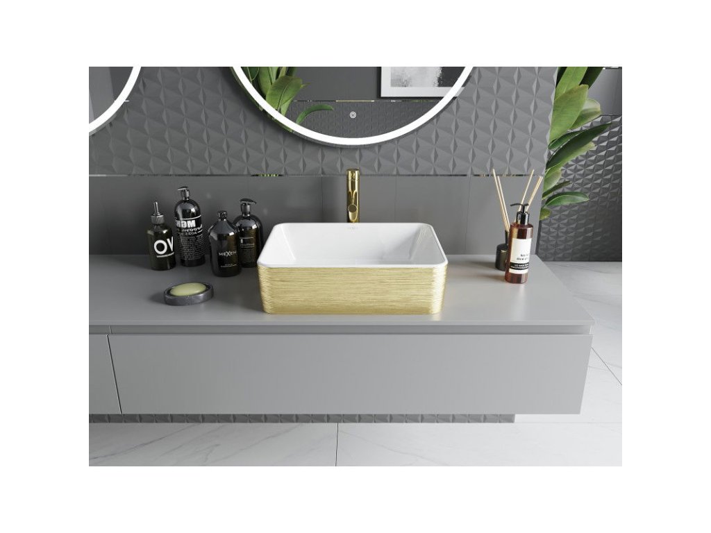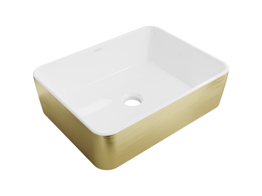 Mexen Catia umývadlo na dosku 48 x 38 cm, vzor biela/zlatá linka - 21314817