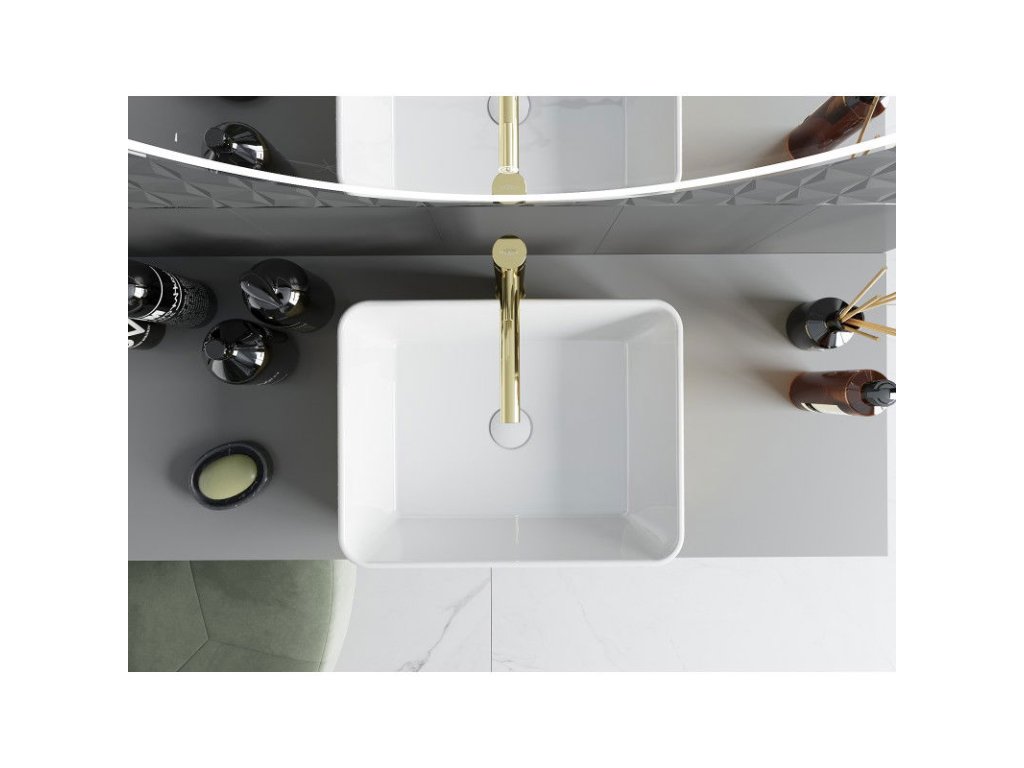 Mexen Catia je elegantné umývadlo na dosku s rozmermi 48 x 38 cm v bielej a zlatej farbe, ideálne do moderných kúpeľní. Je vyrobené z kvalitnej sanitárnej keramiky, má obdĺžnikový tvar a matný povrch, ktorý mu dodáva jedinečný šarm. Absencia otvorov na batériu a prepadu zabezpečuje minimalistický dizajn, zatiaľ čo dodatočná ochranná vrstva zvyšuje odolnosť. Ideálna na dotvorenie interiéru v luxusnom alebo škandinávskom štýle.Diskusia
