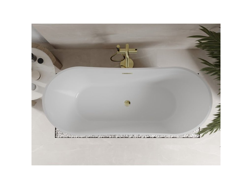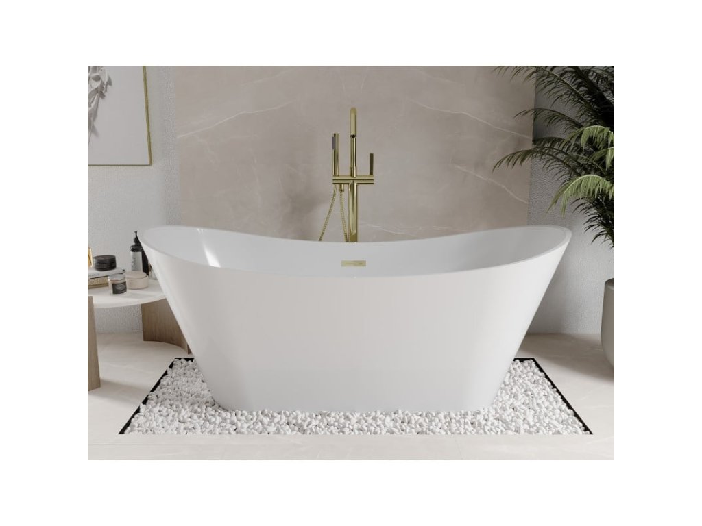 Voľne stojaca vaňa s rozmermi 170 x 75 cm a hĺbkou 40 cm je ideálna do moderných kúpeľní na pohodlné používanie. Je vyrobená zo sanitárneho akrylátu a odolná voči dechtovaniu a UV žiareniu. Biela farba a zlatý povrch jej dodávajú elegantný vzhľad. Oválny tvar a voľne stojaca inštalácia upútajú pozornosť, zatiaľ čo otvor na prepad zvyšuje funkčnosť. V balení nájdete sifón a zátku s kliknutím, vďaka čomu je pripravená na použitie.Diskusia