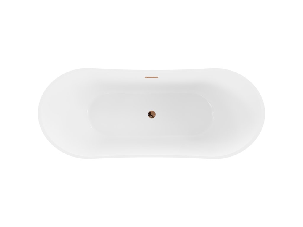 Objavte jedinečnú voľne stojacu vaňu, ktorá spája eleganciu s funkčnosťou. S rozmermi 170 x 75 cm poskytuje priestrannosť a pohodlie pri kúpaní. Je vyrobená zo sanitárneho akrylátu a je odolná voči zmatneniu a UV žiareniu. Jej moderný dizajn v bielej a čiernej farbe s ružovozlatou povrchovou úpravou sa dokonale hodí do každého interiéru kúpeľne. Okrem toho má vaňa prepadový otvor a dodáva sa so sifónom a zacvakávacou zátkou na jednoduchú inštaláciu a používanie.Dodatočné parametre