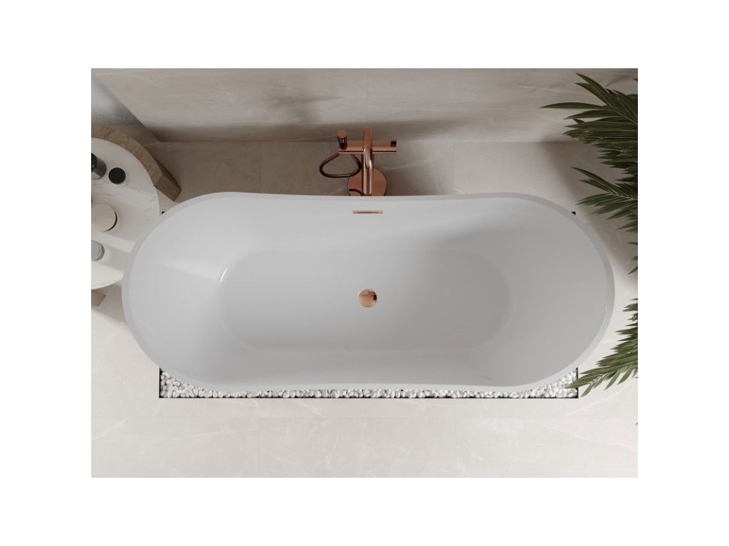 Mexen Celia voľne stojaca vaňa 170 x 75 cm, biela/čierna, prepad ružové zlato - 52331707575-60