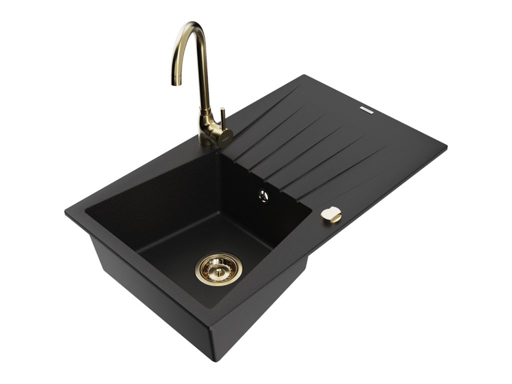 Mexen Cesar drez granitový 1-komorový s odkvapkávačom + batéria Telma, čierny - 6514-77-670200-50