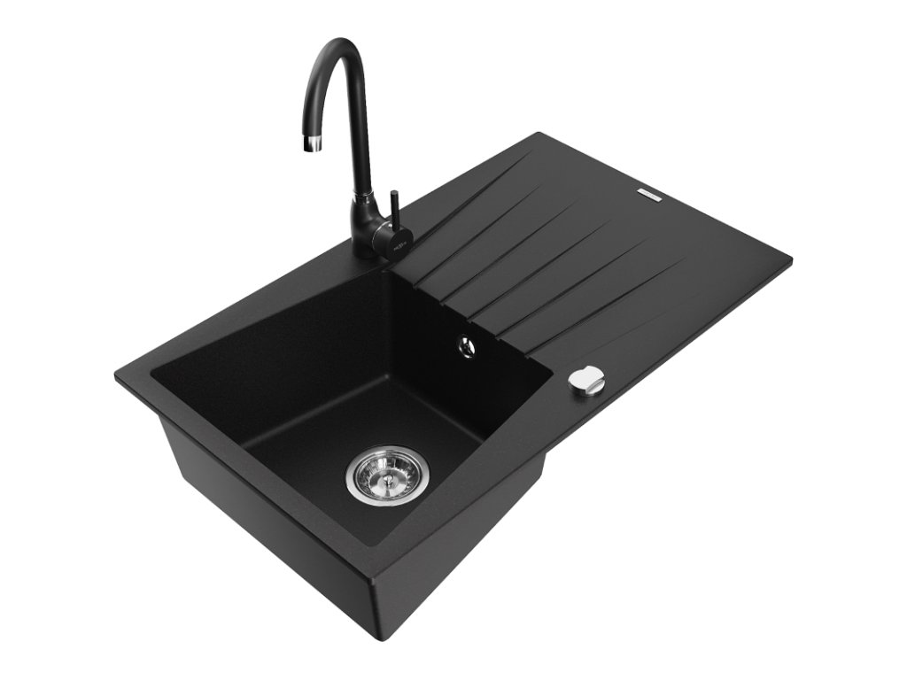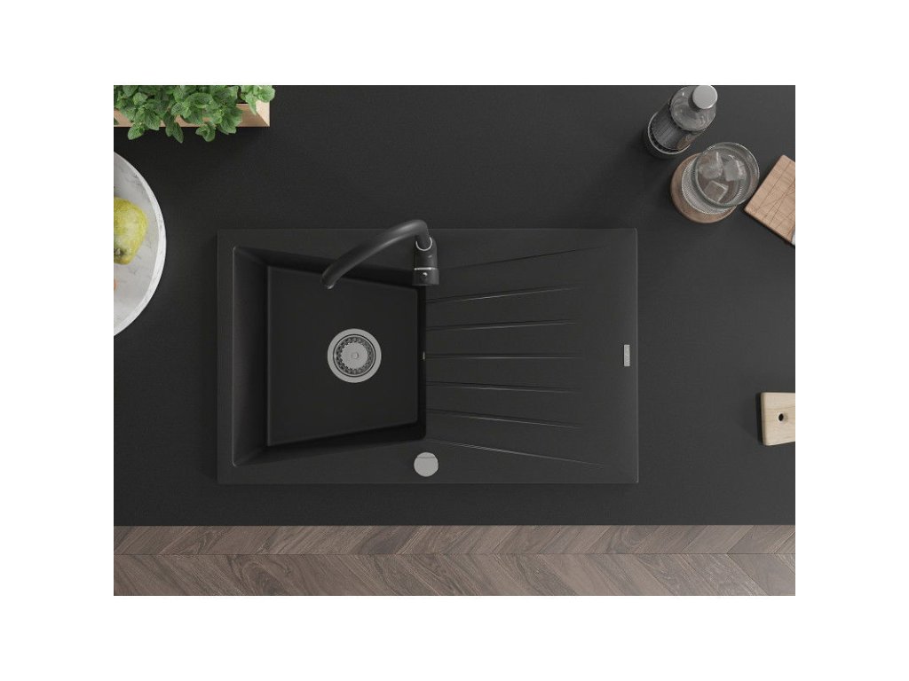 Mexen Cesar drez granitový 1-komorový s odkvapkávačom + batéria Telma, čierny - 6514-77-670200-70