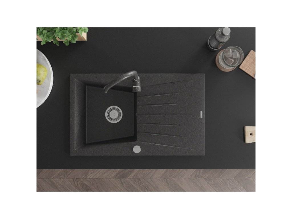 Mexen Cesar drez granitový 1-komorový s odkvapkávačom + batéria Telma, čierny škvrnitý - 6514-76-670200-76