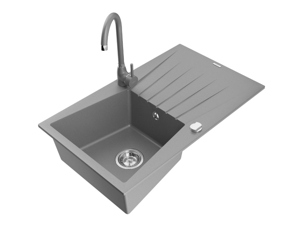 Mexen Cesar drez granitový 1-komorový s odkvapkávačom + batéria Telma, šedý - 6514-71-670200-71