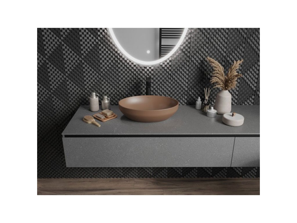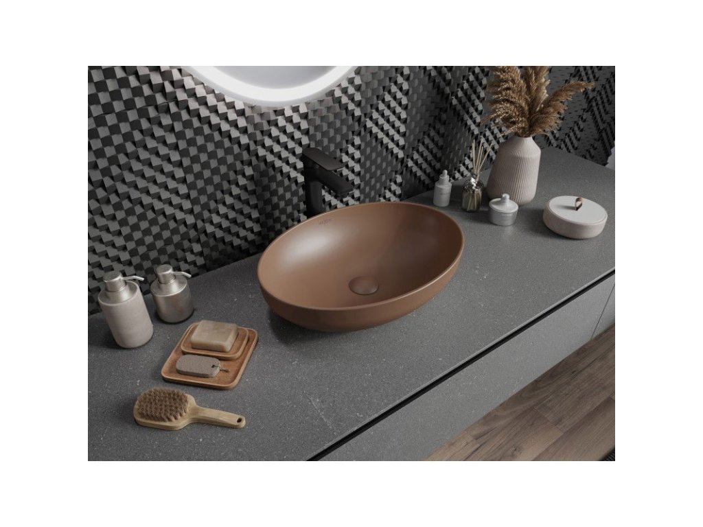 Mexen Cornelia je elegantné umývadlo na dosku s rozmermi 50x37 cm v hnedej matnej farbe. Je vyrobené z kvalitnej sanitárnej keramiky, vyznačuje sa oválnym tvarom a matným povrchom, ktorý mu dodáva moderný vzhľad. Vďaka svojej hĺbke 11,5 cm a výške 14,5 cm je funkčné a pohodlné na používanie. Absencia otvorov na batériu a prepadu umožňuje minimalistický prístup k dizajnu kúpeľne. Ideálna do štýlových interiérov, kde spája estetiku s užitočnosťou.Diskusia