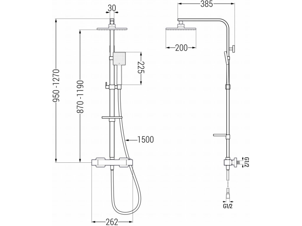 Mexen CQ45 nástenná sprchová súprava s dažďovou sprchou, termostatická batéria, čierna - 772504595-70