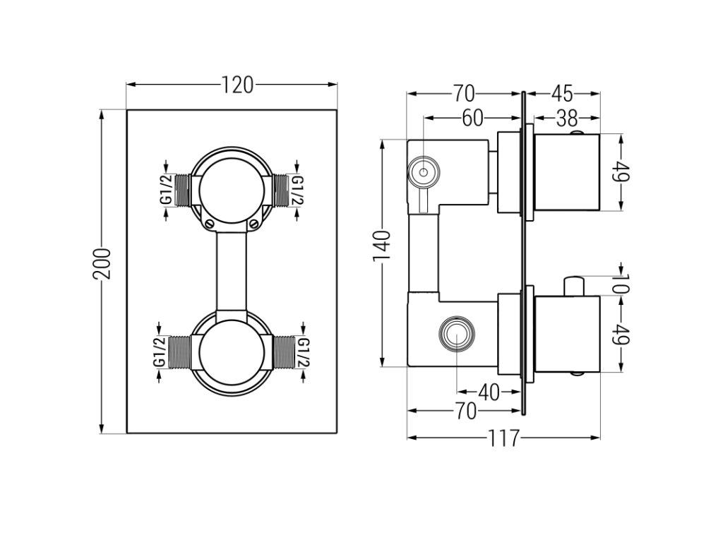 pripojenie: 2x vstup 1/2" a 2x výstup 1/2"