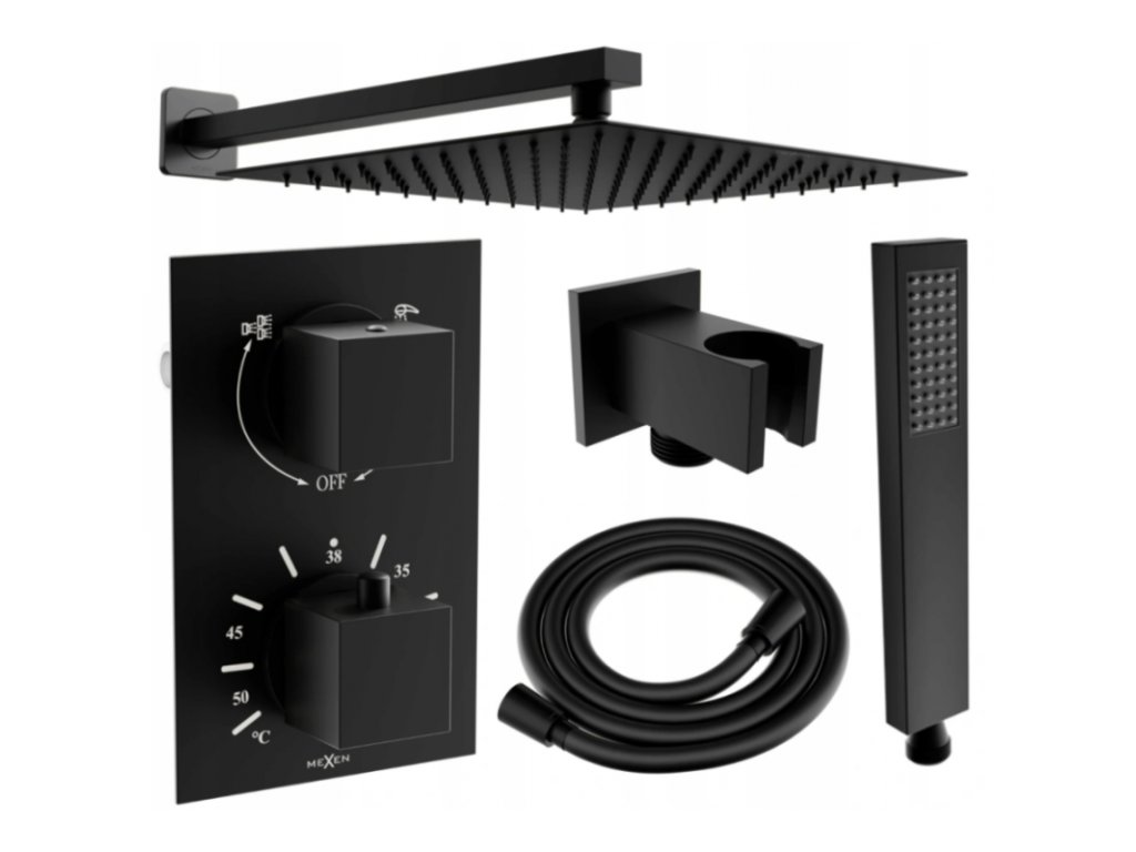 Mexen Cube DR02 podomietková sprchová súprava s dažďovou sprchou 25 cm, čierna - 77502DR0225-70